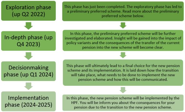 On the basis of the pension agreement, choices must be made about a new pension scheme, in which a choice can primarily be made between two different contract forms. HEINEKEN and the employees' organizations have made a preliminary choice in broad terms, namely the solidary contribution scheme. This choice will be further investigated and elaborated in the in-depth phase in 2022 and 2023.